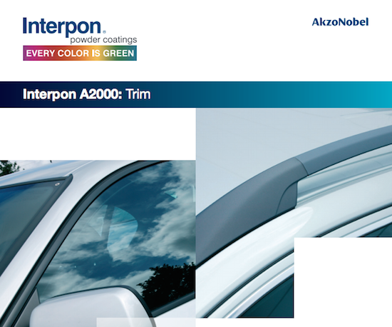 Available in polyester, polyurethane and acrylic, Interpon A2000 achieves a super smooth appearance in a luxurious high gloss black with enhanced scratch resistance, UV durability, and OEM approvals. In addition, the benefits of Interpon A2000 come with huge savings over a similar finish in a liquid base/clear system.